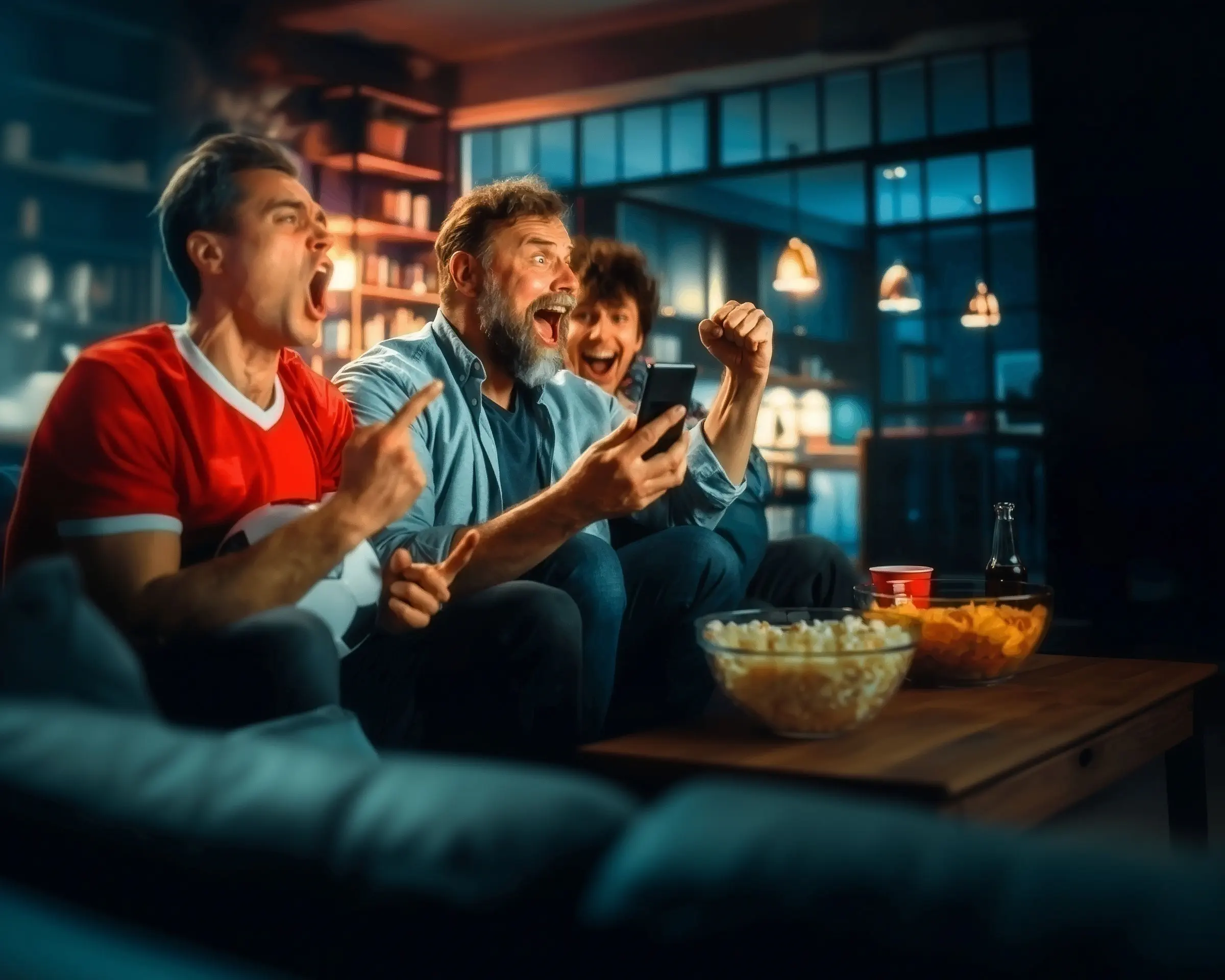 Fans celebrating with soccer ball